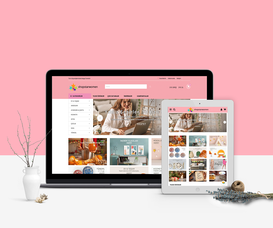 Shopstarwomen.com, bugüne kadar yurt içinde ve yurt dışında, farklı sektörde varlığını gösteren, girişimci kimliği ile birçok yeniliğe imza atan, sosyal sorumluluk projeleriyle tanınan ve çözümler sunarak büyümeye ve gelişmelerine katkıda bulunan Demet Sabancı Çetindoğan başkanlığında e-ticaret dünyasına girdi. Türkiye genelinde il bazında kadın üreticilerimizi bir araya toplayarak Türk kadınının el emeği, göz nuru ürünlerinin yer almasını sağlayacağımız shopstarwomen.com ile kadına destek, ülkeye destek amacıyla yola çıkmış bulunmaktayız. Bu noktada shopstarwomen.com; hem ülke, hem de üreticilerimizin yöre ve ürünlerinin tanıtımını, satışını yapabilecekleri, gündelik hayata dair bilgiler, tarifler ve ürünlerinin hikayelerinin yer alacağı farklı bir site olacaktır. Organik gıdalar, yöresel ürünler, aksesuar, ev dekorasyon, kadın giyim, çocuk, kozmetik gibi pek çok kategori yer alacaktır. Aynı zamanda, bizlerle bu platformda kadınları desteklemek isteyen tüm derneklerin, oluşumların, bireylerin toplu alımlarına açık olacaktır.