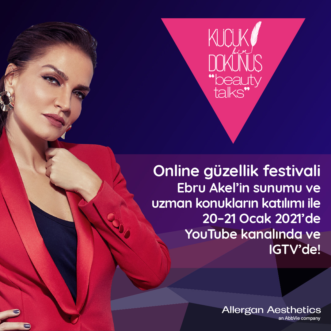 Allergan Medikal Estetik’in tüketici platformu Küçük Bir Dokunuş Türkiye’nin önde gelen medikal estetik ve dermatoloji hekimleri ve tanınmış isimlerin katılımıyla hayata geçireceği Beauty Talks’un hazırlıklarını tamamladı. Güzelliğe dair birçok önemli konunun konuşulacağı ve iki gün sürecek online festival kapsamında; medikal estetikteki son trendler, güzellik kavramının değişen yüzü, makyaj ve sağlıklı yaşama dair hayatımızı kolaylaştıracak ipuçları ve astroloji dünyasının 2021 beklentileri herkesin yakından tanıdığı ünlü isimlerle birlikte konuşulacak. Yılın ilk güzellik festivali 20 – 21 Ocak 2021 tarihlerinde 18.00-22.15 saatleri arasında yayınlanacak.